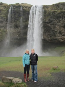 Sam and I stand in front of Seljalandsfoss Falls