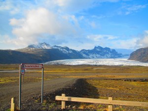 Our next stop, about 50 kilometers away, was somewhat random but once again rewarding as we ended up at the edge a cliff that overlooked Svínafellsjökull Glacier around Skaftafell National Park. Like many stops throughout the day, we were the only tourists there and were able to get as close as we could without actually doing a glacier walk/tour. The warning signs on the walkway leading up to the cliff were interesting enough. A warning about quicksand? Ok, we’re definitely staying on the path then. What a beautiful site though. Rugged mountains surrounding a rugged glacier. Such a cool site.