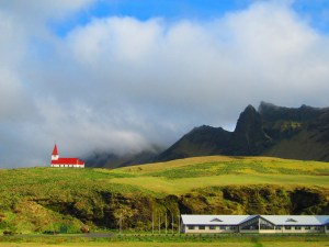 A view of Vik church from the main road