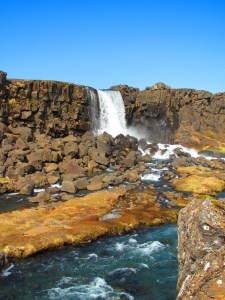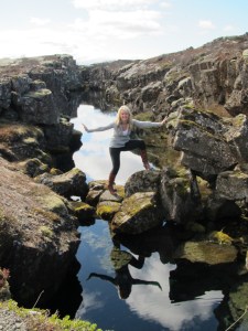 After driving in circles and stopping by several rifts, again, we wandered down a random gravel road. At the end of the road, on our last stop on the trip, we found sheer beauty. Nestled between two rifts was a rock-form platform surrounded by crystal clear water. Below, you could see down 30-40 feet into the water and view the rift walls on either side. On top of the water, you could see the clear reflection of a brilliant blue sky strung with cotton-like clouds. We couldn’t have asked for a better spot. No other tourists. Just us and a pure and simple beautiful place unlike any place I’d been to, yet again. We took our photos, threw krona coins in as a wish for good luck and headed to the airport. Our trip had ended on a perfect note.