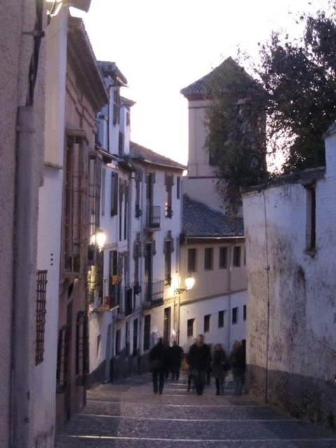 Last night, I spent my final evening in Granada in one of the newer areas (mostly consisting of shops) wandering the streets. The city truly comes to life at night, after siesta. Locals were out walking, shopping and greeting one another. Street performers were performing for loose change. Vendors were taking their place on the streets, roasting nuts. The holiday season was in full swing with tasteful Christmas decor throughout the city. I stopped at a local tapas bar, had a quick meal, and walked up Carrera del Darro under the crescent moon. My visit was complete.