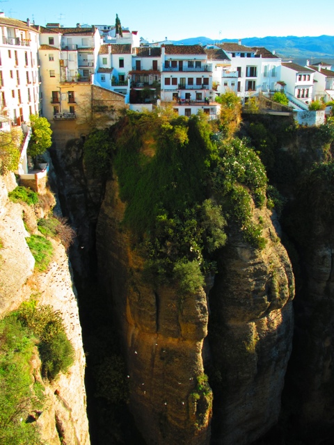 I made my way down to the edge of town and came to a bluff with a huge valley down below. For miles you could see vibrant green hills and the view was spectacular. I continued walking along the paved edge of the cliff, stopping on occassion at several miradors (lookouts) to take a few photos and take in the scenery and the El Tajo gorge below.