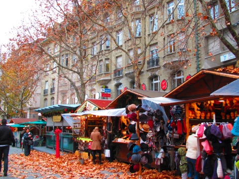 The following day, Jérôme was off to work again, but he came back mid-day and then gave me a ride into the center of Lausanne to explore the city. Again, the holidays were truly bringing out the charm of Switzerland. Every shop was decorated for Christmas and because of the weekend, the city’s main shopping area was lined with vendors selling flowers, fresh fruits and vegetables, cheese and other goods. Like Montreux, there were also several areas of the small huts set up with vendors housed in them. There were hundreds of people out shopping and everything was just so full of life. I walked around for hours just exploring and loving the excitement of the city.