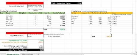 Fortunately, this year I gave myself a head start and have been monitoring since the halfway mark, but really tracking consistently since late December. I used this easy to use excel tracker to calculate my expected points for both trips and shopping bonuses. Here’s an example of what mine looks like: