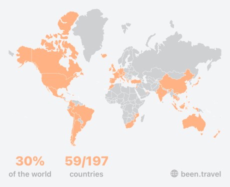 In August 2024, I visited my 59th country, Albania. My travel map below shows the countries I’ve visited. Have a question about a destination? Drop me a note on my contact page. Always happy to help provide travel tips or advice… or, at the very least, point you in the right direction if I can.
